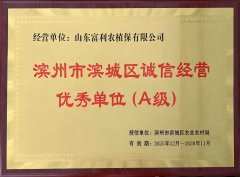 ■2026-04-14 富利農植保榮獲“濱州市濱城區誠信經營優秀單位(A 級)