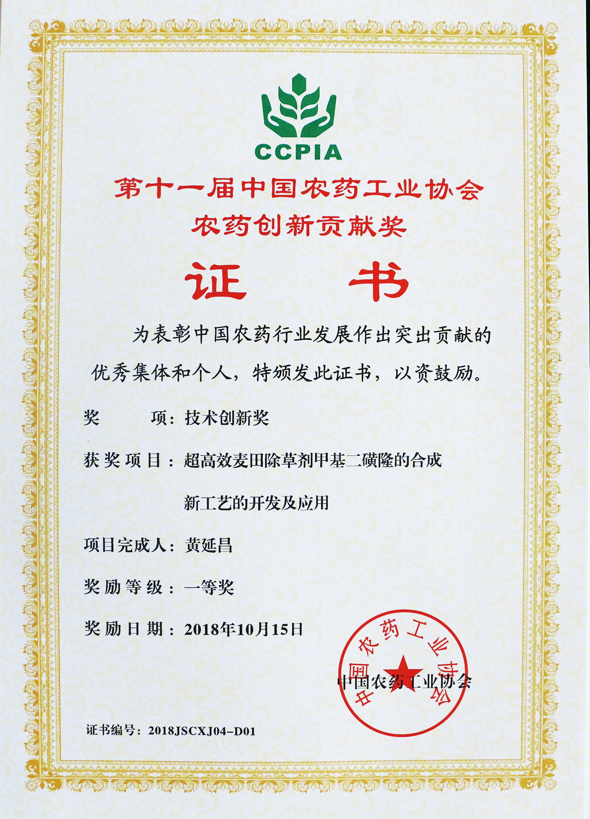 據(jù)悉,在被評定為綠色產(chǎn)品的11家石油和化工行業(yè)企業(yè)中,僅有2家農(nóng)藥化工企業(yè)獲此殊榮。我公司研究所所長盛慶全參加了此次大會,并代表公司上臺領(lǐng)取證書。