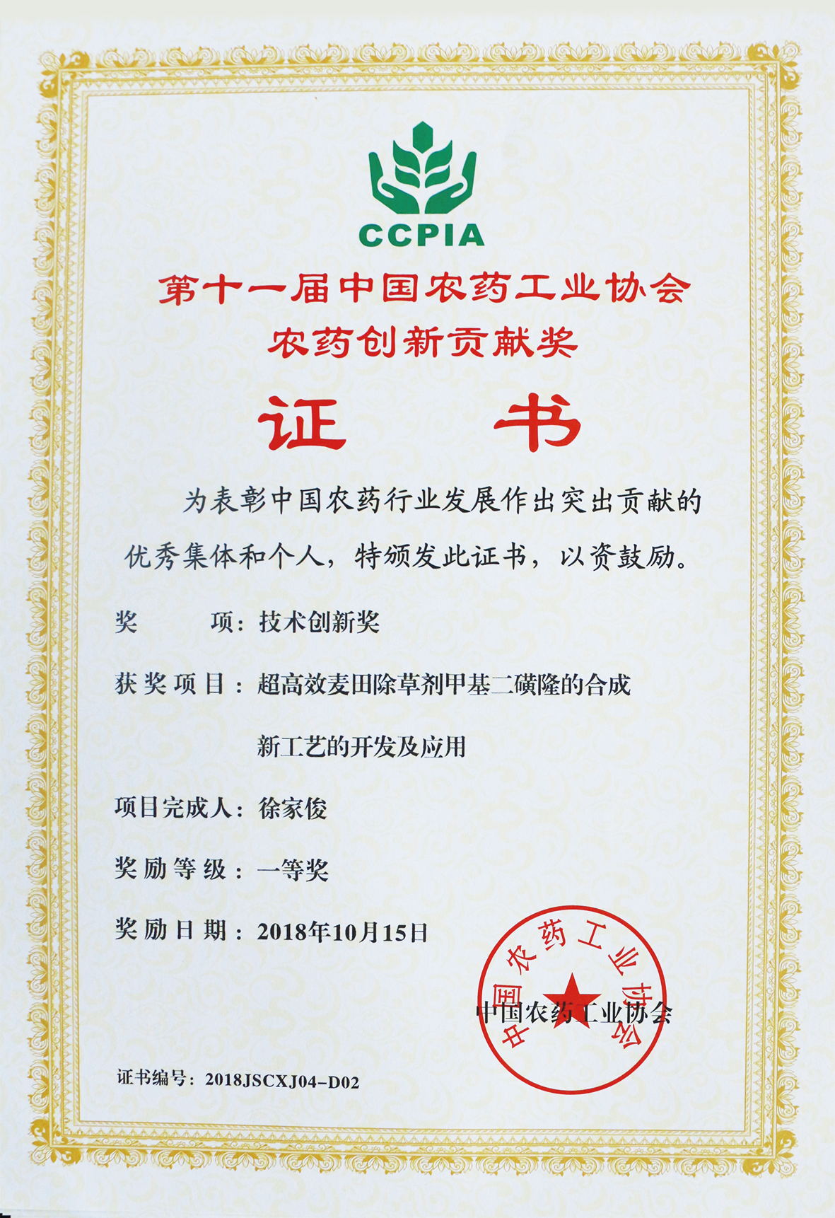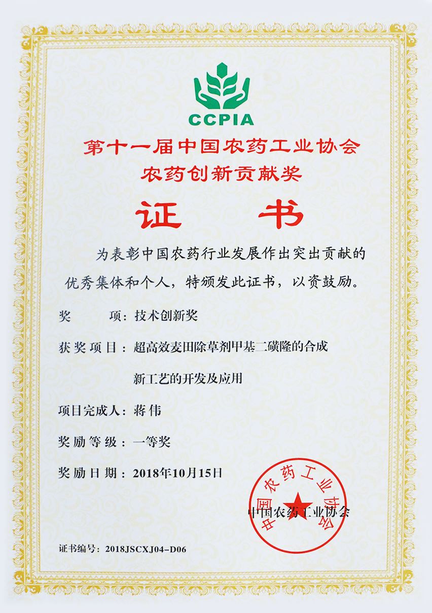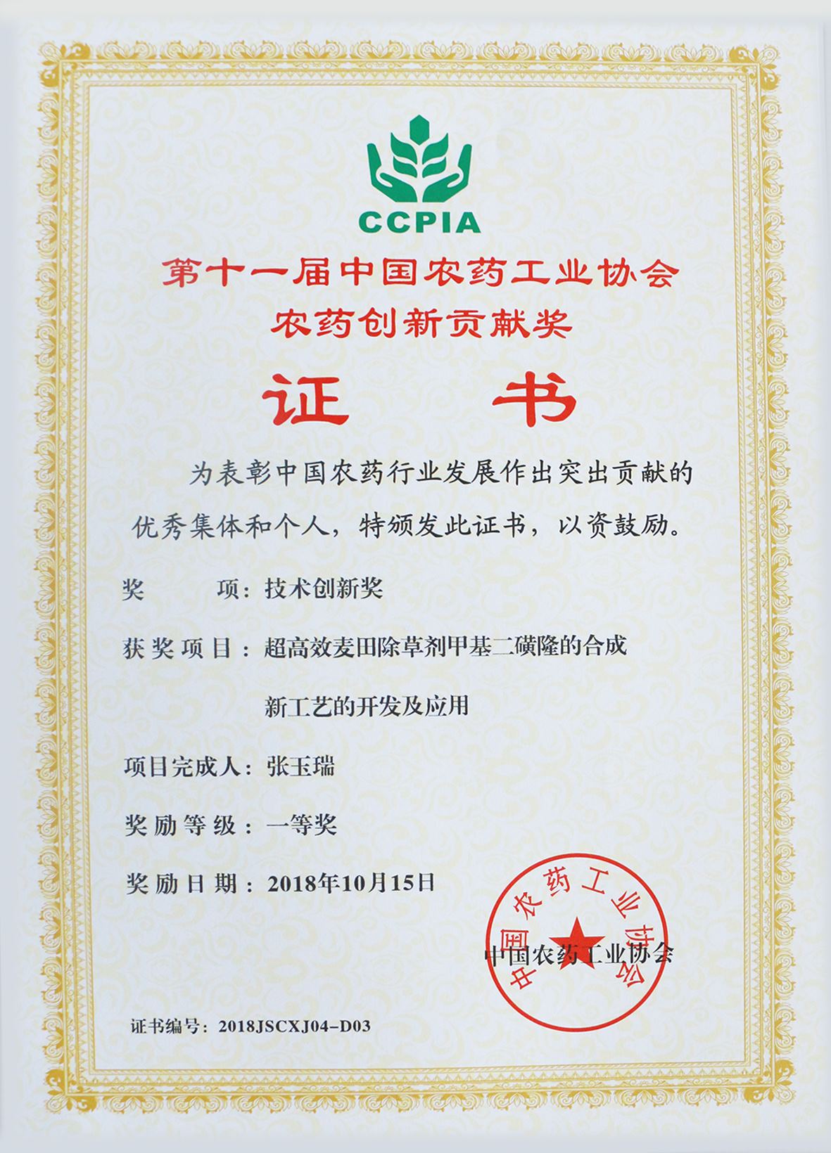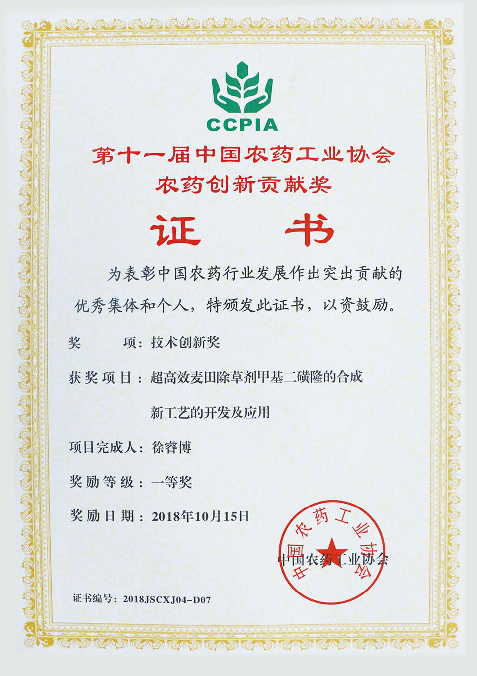 ■2021-04-08 我公司“25%苯醚甲環(huán)唑懸浮劑” 配方榮獲三等獎(jiǎng)