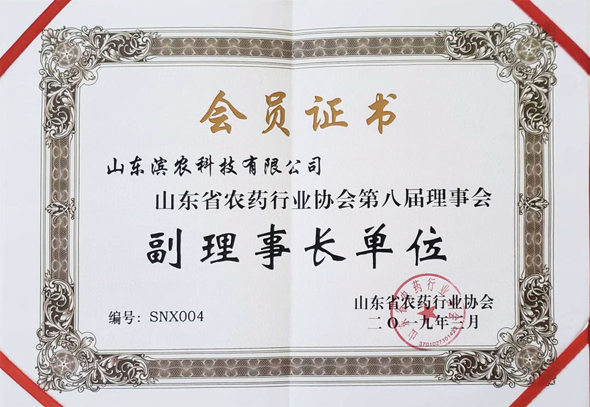 ■2019-03-04 山東濱農科技有限公司獲評山東省農藥行業協會第八屆理事會副理事長單位