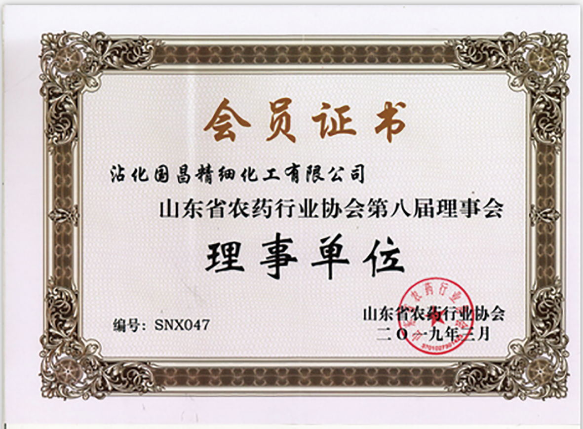 ■2019-03-04 沾化國昌精細化工有限公司獲評山東省農藥行業協會第八屆理事會