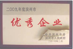 2010年2月,我公司被濱州市人民政府評為“2009年度濱州市優秀企業”。