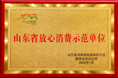 山東省消費者權益保護工作聯席會議辦公室授予我公司“山東省放心消費示范單