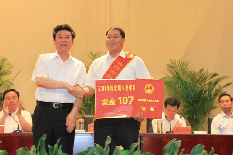 我公司董事長黃延昌榮獲2011年濱州市科學技術最高獎發(fā)布時間:2014-06-16 10:332012年3月19日,濱州市人民政府濱政字【2012】22號文件《關于2011年度濱州市科學技術獎勵的決定》公布了2011年獲得濱州市科學技術獎勵的單位和個人。我公司董事長黃延昌喜獲2011年度“濱州市科學技術最高獎”。 6月1日下午,在市政大廈隆重舉行的全市科學技術獎勵大會上,董事長黃延昌獲頒 “2011年度濱州市科學技術最高獎”,并獲獎金10萬元。 近幾年,我公司自主創(chuàng)新能力大幅提升,創(chuàng)新平臺建設步伐加快,為公司研發(fā)“高精尖”綠色農(nóng)藥提供了強力的技術支撐。特別是在農(nóng)藥合成及制劑的復配領域中均實現(xiàn)了重大創(chuàng)新與突破,為中國農(nóng)藥產(chǎn)業(yè)的發(fā)展壯大做出了重要貢獻:系統(tǒng)研究了多種不對稱催化劑的合成方法,研發(fā)出多種手性化合物合成所用的不對稱催化劑,解決了手性化合物合成中的關鍵、共性問題,開發(fā)出5個農(nóng)藥原藥新產(chǎn)品,填補了國內(nèi)空白。首創(chuàng)了多個多元復配制劑配方,解決了國內(nèi)部分農(nóng)作物田間農(nóng)藥品種少、成本高的難題,增添了農(nóng)藥新品種,提高了在國內(nèi)農(nóng)藥行業(yè)的市場競爭力。 ![]() |