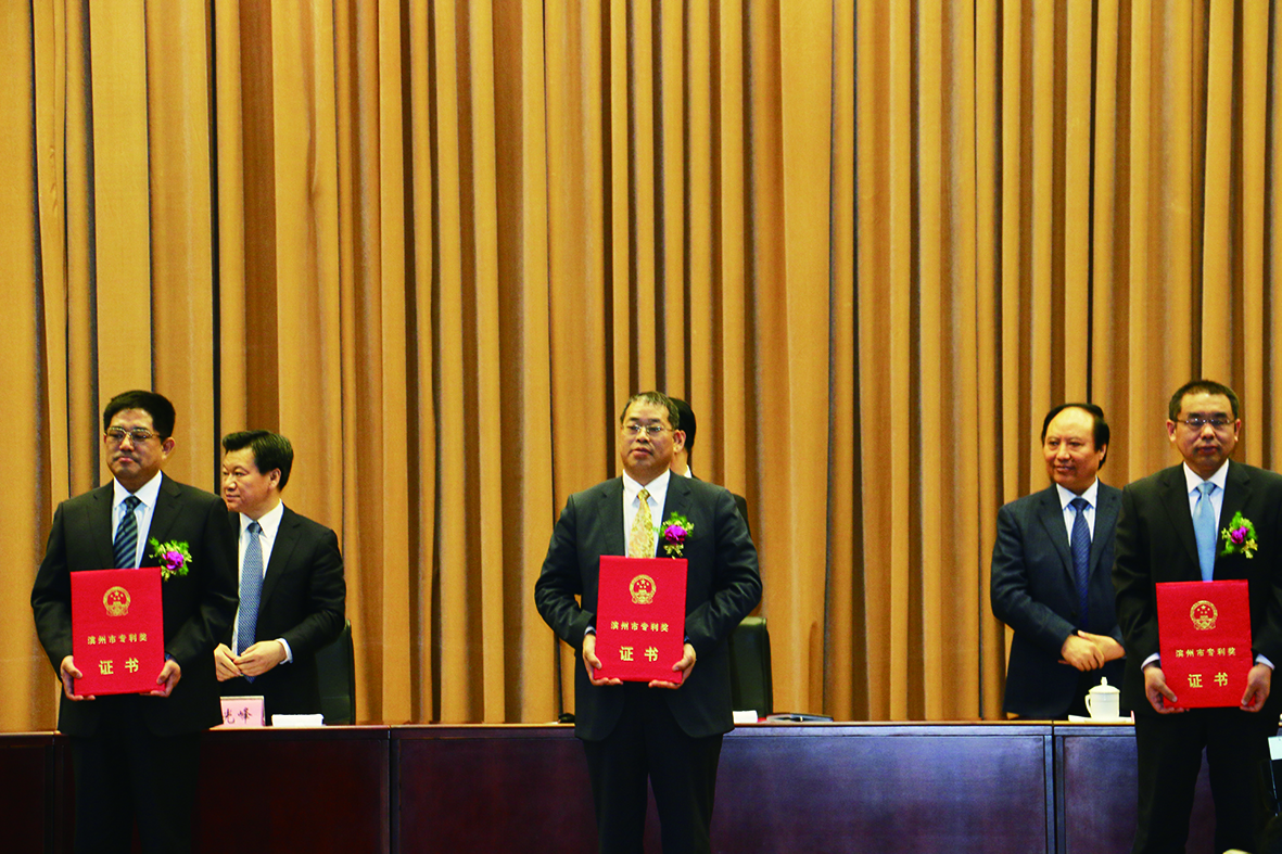 3月18日,濱州市市政府隆重召開全市科學技術獎勵大會,表彰獎勵為全市科技事業做出重要貢獻的先進單位和個人。我公司申報的發明專利“一種含有乙草胺和仲丁靈的除草組合物”被濱州市人民政府授予濱州市專利一等獎,董事長黃延昌參加頒獎大會,并現場領獎。