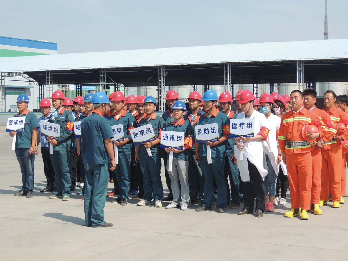 沾化國(guó)昌組織應(yīng)急救援演練發(fā)布時(shí)間:2016-07-07 09:25本報(bào)訊 6月17日,沾化國(guó)昌精細(xì)化工有限公司根據(jù)濱州市、沾化區(qū)、濱海鎮(zhèn)以及園區(qū)對(duì)“安全生產(chǎn)月”安全事故應(yīng)急救援演練周的統(tǒng)一部署,開展了2016年度安全事故應(yīng)急救援演練,濱海鎮(zhèn)、園區(qū)及濱海鎮(zhèn)各企業(yè)領(lǐng)導(dǎo)參加了此次演練。 本次演練模擬事故為國(guó)一車間罐區(qū)甲苯泄漏,1人中毒,靜電導(dǎo)致著火。巡檢人員發(fā)現(xiàn)事故后及時(shí)上報(bào)車間,車間立即啟動(dòng)應(yīng)急救援預(yù)案,并上報(bào)公司啟動(dòng)公司級(jí)應(yīng)急救援預(yù)案;勘察人員對(duì)現(xiàn)場(chǎng)進(jìn)行檢查后,救援人員身背空氣呼吸器進(jìn)入現(xiàn)場(chǎng)將人員救出,實(shí)行現(xiàn)場(chǎng)人工施救,并送醫(yī)院進(jìn)行救治;搶險(xiǎn)組對(duì)泄漏源進(jìn)行搶修,公司消防隊(duì)、車間現(xiàn)場(chǎng)人員進(jìn)行消防滅火。