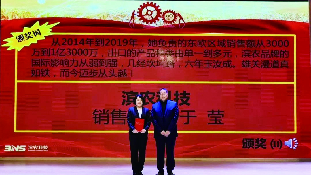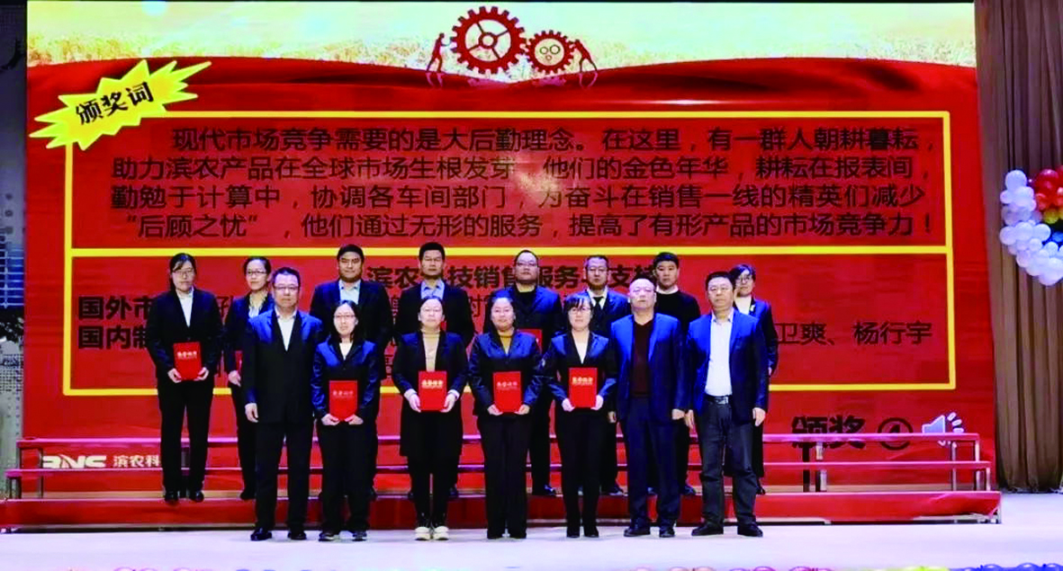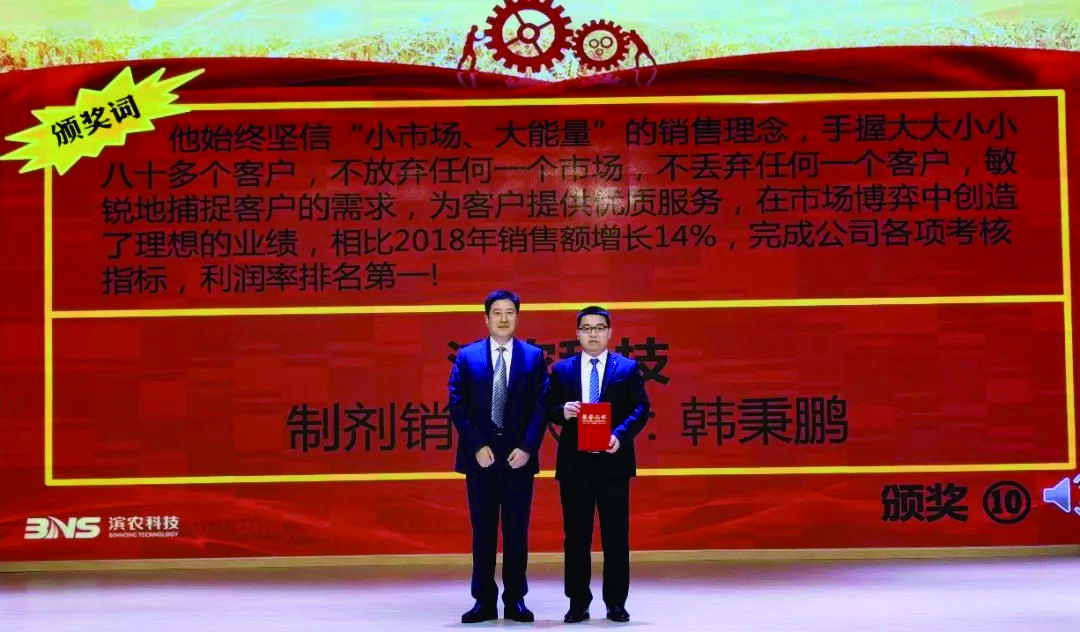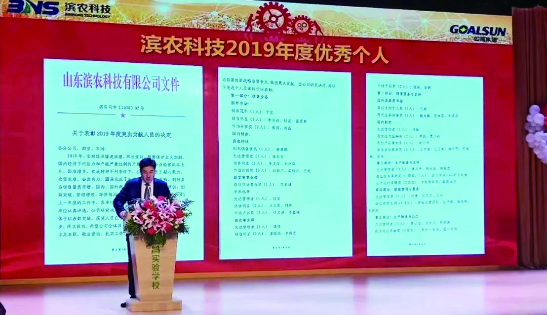 大會分為四項議程,首先由濱農科技總經理張茂貴、國昌集團總經理夏毅飛分別宣讀了濱農科技、國昌集團2019年度突出貢獻獎、優秀管理者、銷售冠軍、銷售標兵的表彰決定;接著,集團公司全體高層為在2019年度做出突出貢獻的先進個人及團隊分別頒發了榮譽證書并合影留念,大會通過宣讀頒獎詞的方式,傳達了對先進工作者的肯定,也鼓舞了大家2020再創佳績的信心;隨后,國昌集團突出貢獻、特別貢獻獎代表常景春、趙英華,優秀員工代表辛磊磊,濱農科技銷售狀元于瑩、韓秉鵬,最具活力團隊代表濱農GLP實驗室張雪先后作了典型發言。