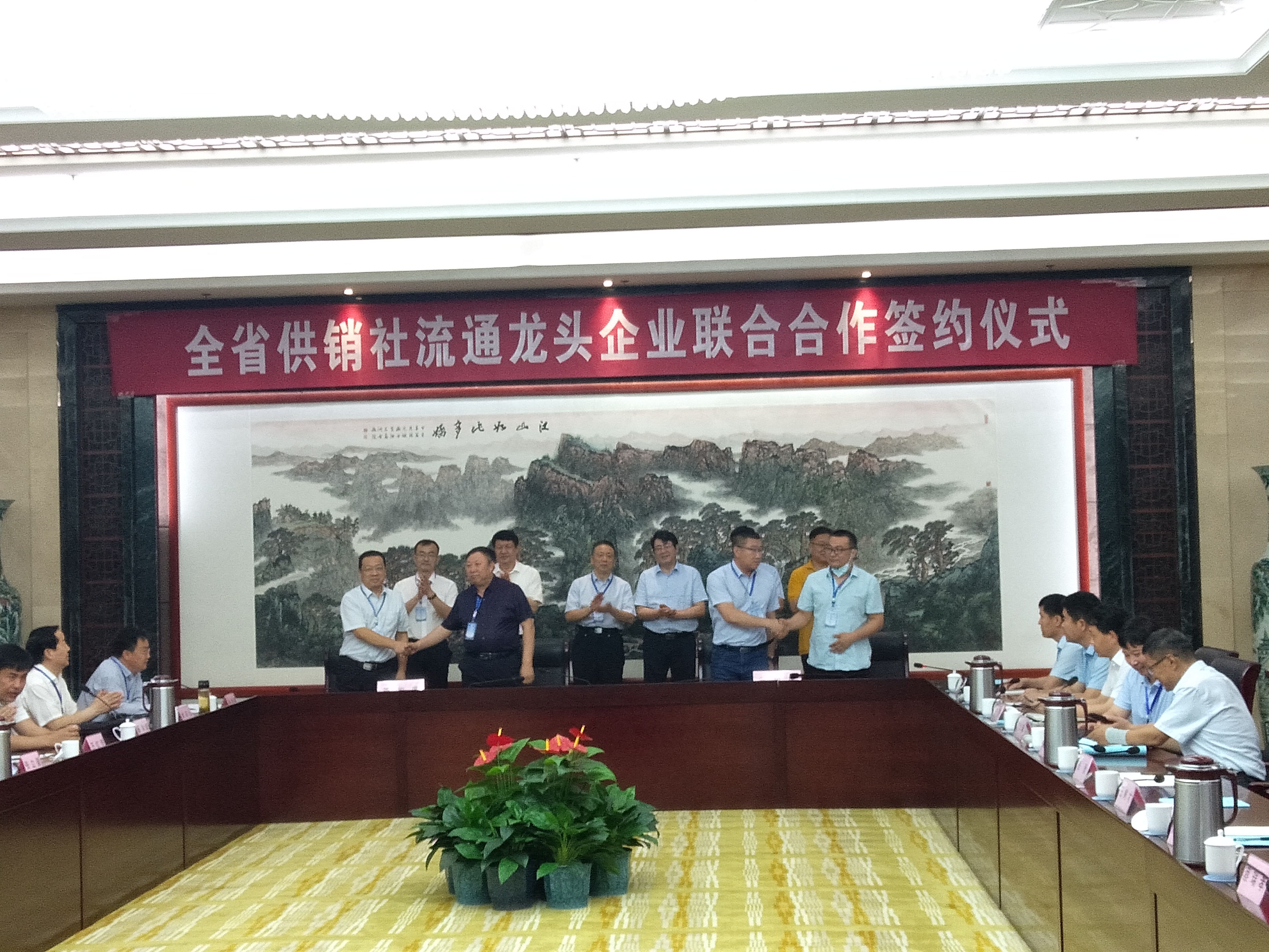 6月18日,由山東省供銷合作社聯合社主辦的全省供銷社商貿流通服務網絡建設試點縣先行啟動縣現場觀摩暨流通龍頭企業聯合合作經驗交流會在鄒平市順利舉行,省社黨組成員、監事會副主任胡文樸,濱州市副市長臧偉,鄒平市市委副書記、市長胡云江,濱州市供銷合作社黨組副書記、理事會副主任范克志,濱州市供銷合作社黨組成員、理事會副主任蔣海峰等領導出席會議。會上,我公司新零售事業部副經理蔡瑞孝代表公司參加并與山東供銷農業服務股份有限公司、濱州市供銷合作社簽訂了三方合作協議。