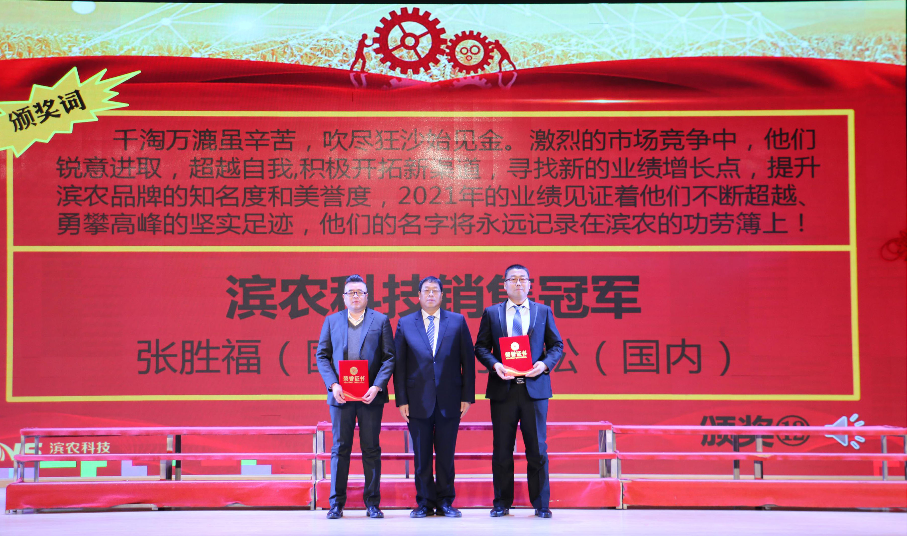 大會分為四項議程,首先由國昌集團總經理夏毅飛、濱農科技總經理張茂貴分別宣讀了國昌集團、濱農科技2021年度突出貢獻獎、優秀管理者、銷售冠軍、銷售標兵的表彰決定。接著,集團公司全體高層為在2021年度做出突出貢獻的先進個人及團隊分別頒發了榮譽證書并合影留念,大會通過宣讀頒獎詞的方式,傳遞了對先進工作者的肯定,也鼓舞了大家2022年再創佳績的信心。隨后,國昌集團優秀管理者代表趙永濤、優秀員工代表王洪建,濱農科技優秀管理者代表張興鵬、銷售狀元時銀松先后作了典型發言。