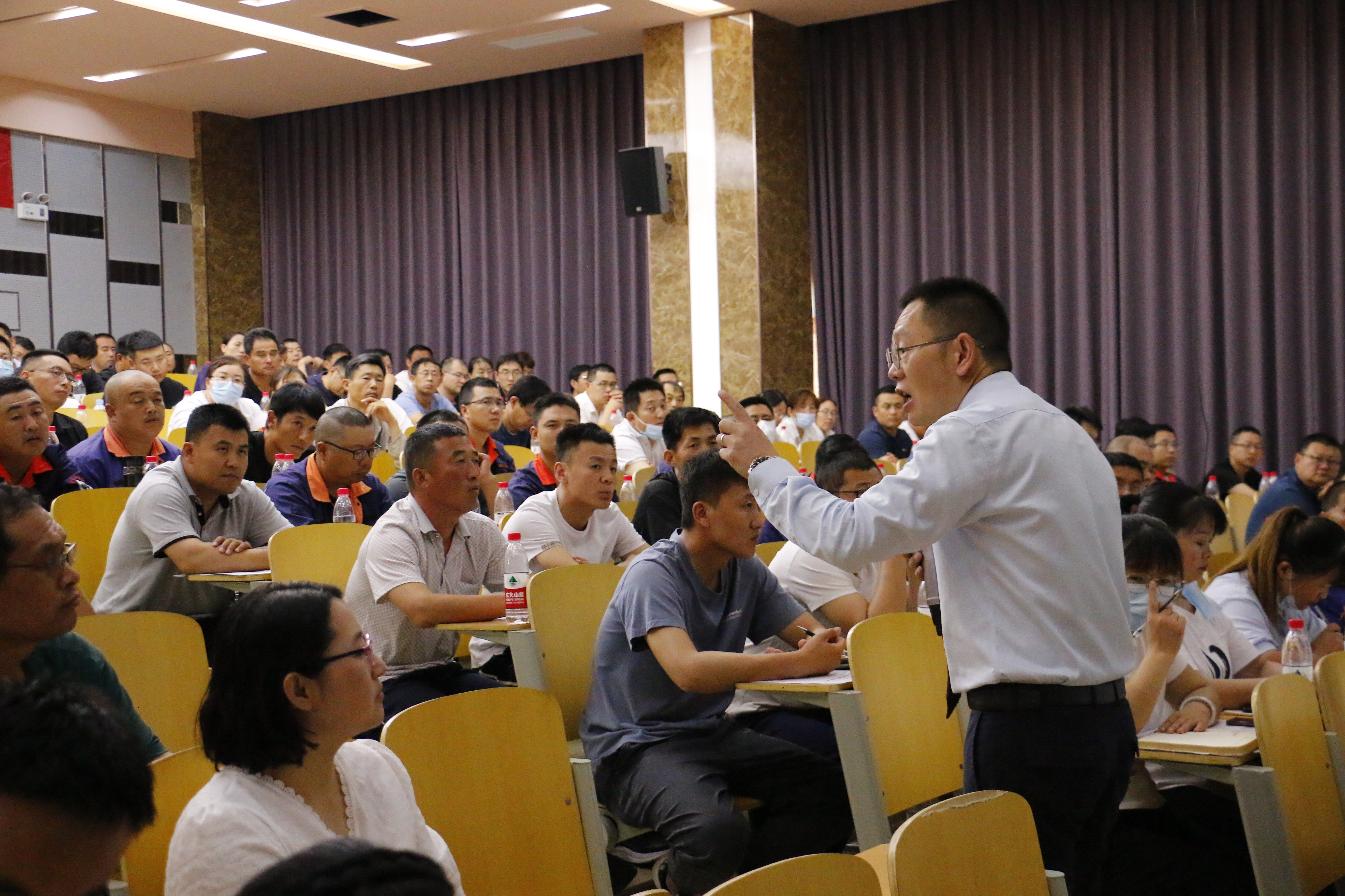 6月23-24日,我公司特邀生產管理專家沈懷金老師       開展了為期兩天的《金牌班組長“班前、班中、班后”一日工作標準化》專題培訓,公司27個車間部門150余名中高層、班組長及骨干員工參加。首先,集團培訓及企業文化部主任戚哲芬對培訓項目的引入做了闡釋,本課程是繼課程考察試聽、講師現場調研之后,基于公司生產管理現狀、班組長群體的人員及能力結構,針對性賦能其專業化能力和職業化素養的提升。董事長李華做了開班致詞,結合自身30年的職場歷程,強調了機械化換人、自動化減人、智能化無人是未來的發展方向,這就要求班組長能力要進行升級迭代,使班組管理走向規范化、達到標準化,進而助力企業的高質量發展。