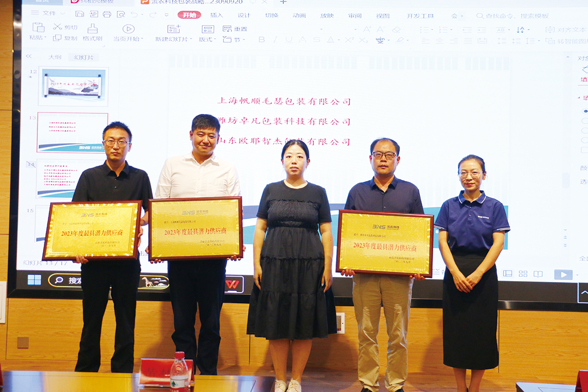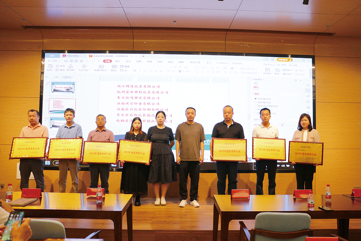本次大會的主題是“凝心聚力,融創(chuàng)未來”,希望大家在當(dāng)前經(jīng)濟(jì)下行競爭加劇的前提下,心往一處想,勁往一處使,同心協(xié)力,共謀發(fā)展。會議分為三項(xiàng)議程,包裝物供應(yīng)商交流會、年度優(yōu)秀供應(yīng)商表彰會及年度包裝物招標(biāo)宣貫會。首先,孟總結(jié)合我公司包裝質(zhì)量現(xiàn)狀,就如何控制和提高包裝物質(zhì)量提出了相關(guān)要求;蓋經(jīng)理、馮經(jīng)理簡要介紹了我公司2023年出口情況,當(dāng)前農(nóng)化行業(yè)整體出口形勢嚴(yán)峻,出口數(shù)量、產(chǎn)品價(jià)格均大幅下滑,并重點(diǎn)分析了南美市場和俄烏戰(zhàn)爭所在的東歐市場的變化情況,以及中東市場對瓶型的多樣化需求;張總基于市場提出了包裝的三個(gè)維度——專業(yè)維度、企業(yè)維度和市場維度,并結(jié)合高質(zhì)量發(fā)展賦能的相關(guān)要求,指出了包裝痛點(diǎn)以及國家政策對包裝的影響;趙總就我公司制劑生產(chǎn)規(guī)模、自動化改造、質(zhì)量控制、成本管控、裝卸效率提升、倉庫庫存現(xiàn)狀進(jìn)行了全面闡述。最后,黃經(jīng)理做了總結(jié)發(fā)言,在國內(nèi)市場萎靡不振、國外市場危機(jī)重重的情況下,望廣大供應(yīng)商能夠直面問題,直擊痛點(diǎn),濱農(nóng)愿與供應(yīng)商朋友攜手同行,乘風(fēng)破浪,勇往直前;接著,宣讀了2023年優(yōu)秀供應(yīng)商名單并現(xiàn)場頒獎(jiǎng)合影留念。