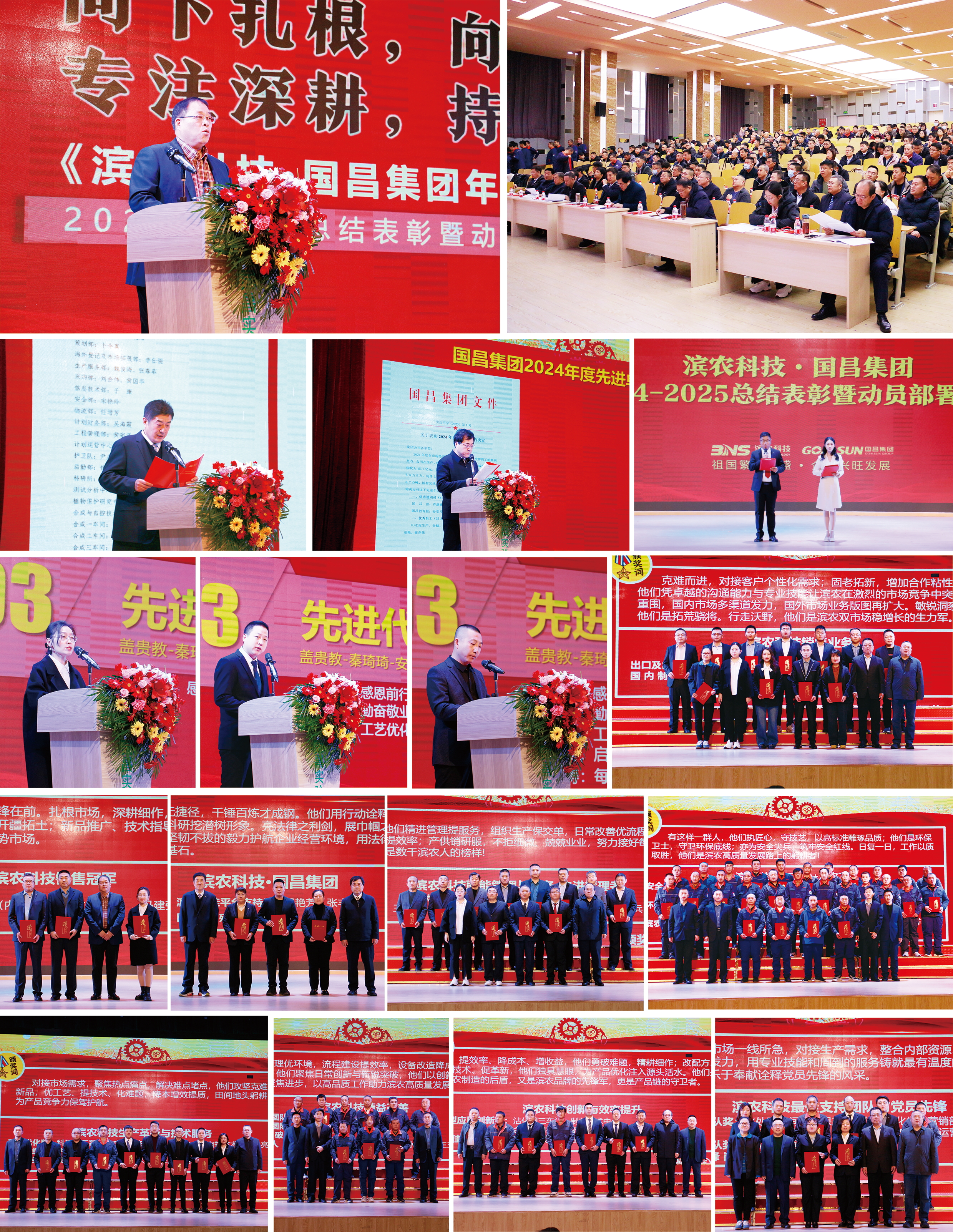 1月26日,濱農科技-國昌集團2024-2025總結表彰暨動員部署大會華章再續,以“向下扎根,向上生長;專注深耕,持之以恒”為主題隆重啟幕。本次大會線上線下同步參會,共分為表彰頒獎及動員部署兩個篇章,總結回顧2024年奮進歷程,明確部署2025年目標任務。集團公司中高層管理人員、銷售精英及骨干員工300余人歡聚一堂,為新一年明方向建信心,蓄勢尋機,擘畫發展。