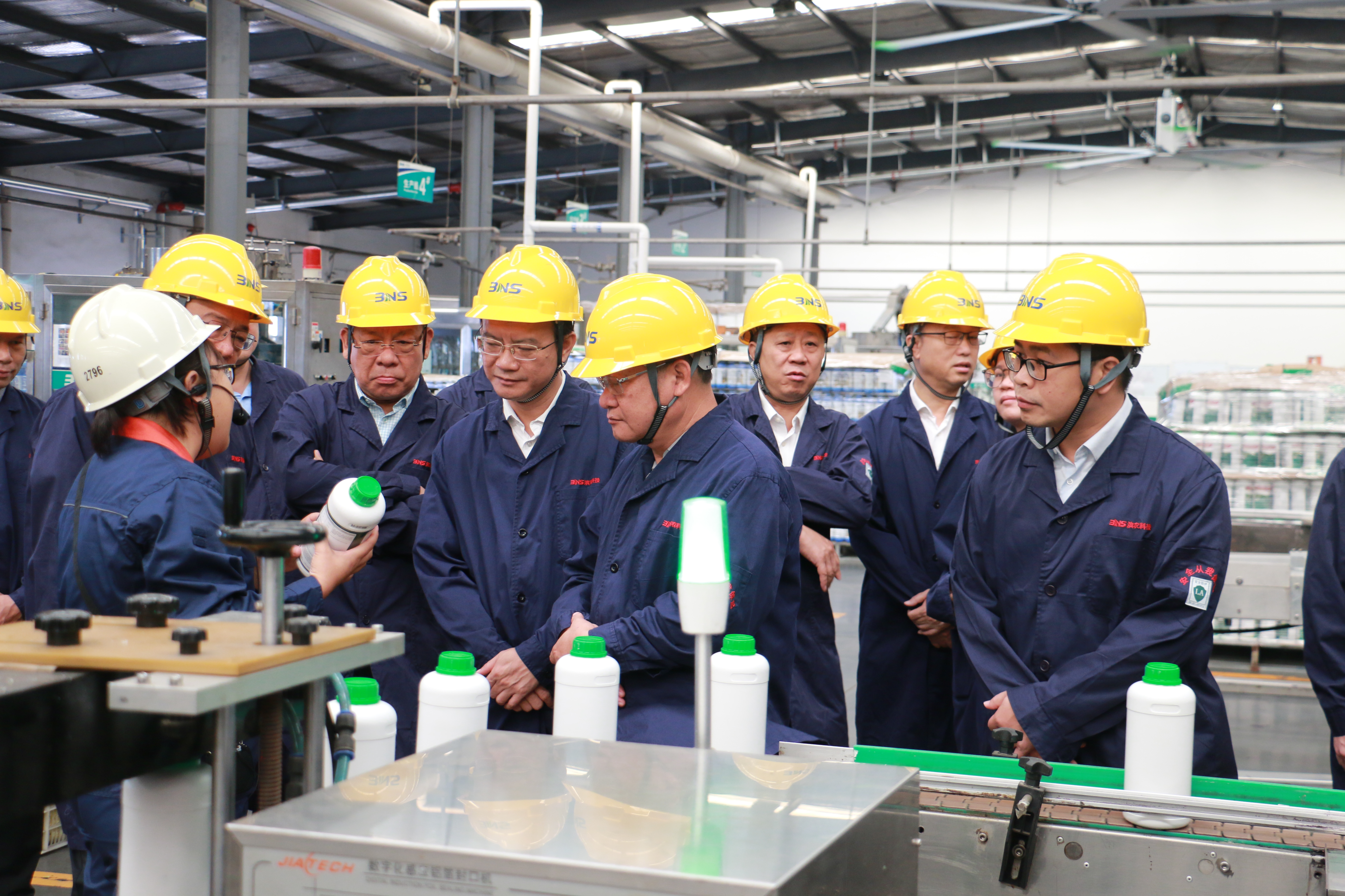 7月15日下午,廣西省田東縣縣長韓啟強率當?shù)卣猩探M來我公司參觀考察,我公司董事長李華熱情接待并陪同客戶參觀了 HSE 教育室、中控室、自動化灌裝生產(chǎn)線、成品倉庫、綠色化工延伸產(chǎn)業(yè)鏈項目贏新化工、智能生測溫室等核心區(qū)域,實地了解了濱農(nóng)科技在綠色生產(chǎn)、本質(zhì)安全管理、技術(shù)創(chuàng)新及成果轉(zhuǎn)化等方面的實踐成果。