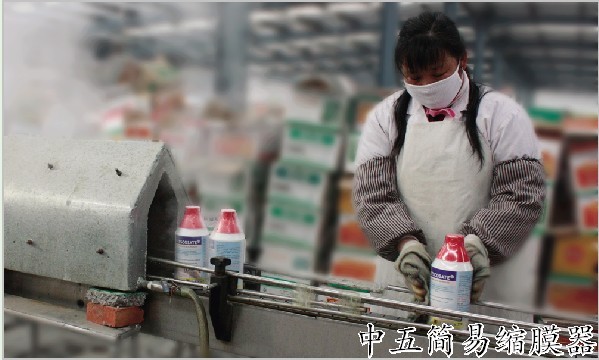 以往生產出口1L除草劑縮膜,車間一直采用簡陋的噴蒸汽縮膜方式,因蒸汽中含水,導致縮膜廢品率較高,包材浪費量大。基于此,車間自行改造自制簡易縮膜器一個,在出口敵敵畏及草甘膦產品縮膜試用中,效果良好,杜絕了縮膜廢品的產生。
