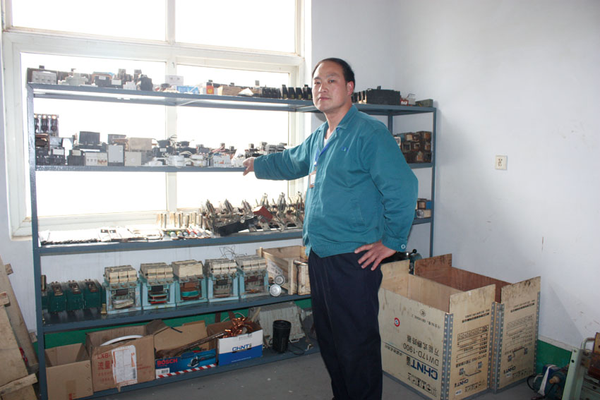 在動力車間的管理下,原先的廢料場變成了具有濱農特色的廢舊物資超市,為各車間提供了便利條件,殊不知,在動力車間內部還有一個小型的廢舊物資超市呢。在這個小超市里,整齊擺放著一些設備的零部件或配件,如電器類交流接觸器,機械設備上的軸承、設備上拆卸下來的有色金屬條,一截一截的電纜電線,電焊條頭、在一個小盒子里甚至盛滿了絕緣膠帶的內芯……
