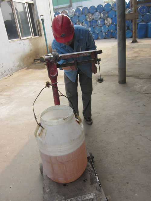 注重原材料控制,嚴把原料計量。在懸浮劑車間,什么原料存放在什么地點都是固定的,原料全部用標牌標注名稱,避免出現混料情況。由于一些員工不認秤不懂計量,就由車間倉庫保管員專門為領料員工計量過秤。保管員會嚴格按照配方含量要求計量,絕對不會出現錯料、少料、多料現象。幾年來,懸浮劑車間產品配方變化很小,但質量提升很大,完全得益于物料計量準確。以前出現過懸浮劑結塊質量不過關的現象,根本不是配方問題,而是由于計量不準確而打破了配方的配合比。對于剩余庫存,保管員在交接班時都要細細核查數量,并詳細填寫庫存清單。這樣可以及時發現發料問題,出現生產問題時還可以有效查詢。避免庫存不清,無法掌握發料投料情況。