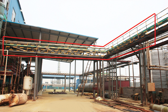 由于合一車間的管線位置較高且處于“架空”狀態(tài),不利于平時(shí)的檢查和維修。對(duì)此,車間在物料儲(chǔ)罐區(qū)到上料管線和回料管線,車間工序到污水罐區(qū)回料管線兩側(cè)均制作安裝了單人行通道。該通道管線支柱采用133管件,并且在通道兩側(cè)設(shè)立護(hù)欄,安全可靠,解決了平時(shí)檢查和維修不便的麻煩。