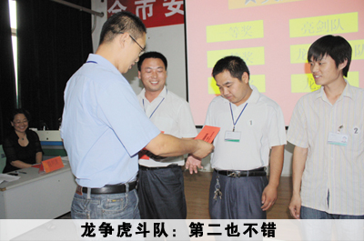 比賽設(shè)有必答題、搶答題、風(fēng)險(xiǎn)題三個(gè)環(huán)節(jié),還為現(xiàn)場(chǎng)觀眾特設(shè)了觀眾題。副總經(jīng)理陳延剛擔(dān)任總裁判。比賽內(nèi)容涵蓋企業(yè)文化、安全環(huán)保、規(guī)章制度等各個(gè)方面,內(nèi)容豐富,涵蓋面廣,重點(diǎn)突出,出題方式靈活多樣。各隊(duì)選手們準(zhǔn)備充分,精神飽滿,競(jìng)賽過程拼搶激烈,高潮迭起,觀眾互動(dòng)搶答,精彩紛呈。經(jīng)過三輪激烈的角逐,科室一組亮劍隊(duì)以270分的絕對(duì)優(yōu)勢(shì)勇奪桂冠,一分廠龍爭虎斗隊(duì)和四分廠龍之隊(duì)分獲二、三名。陳總為各參賽隊(duì)現(xiàn)場(chǎng)頒獎(jiǎng),企業(yè)文化部主任戚哲芬為本次活動(dòng)組織做了總結(jié)點(diǎn)評(píng),并針對(duì)現(xiàn)場(chǎng)組織的諸多細(xì)節(jié)問題提出要求。