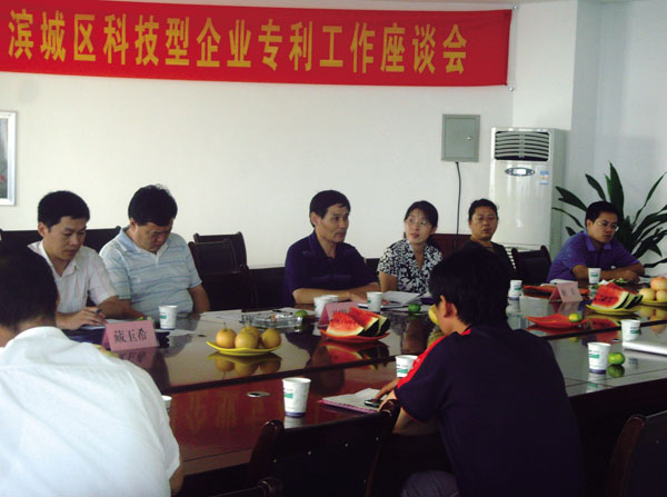 2009年8月27日下午,由濱城區(qū)科技局、濱州市專利局聯(lián)合主辦的濱州市科技型企業(yè)專利座談會(huì)在我銷售公司三樓會(huì)議室召開。會(huì)議由濱城區(qū)科技局局長孫明亮主持,濱州市知識產(chǎn)權(quán)局副局長崔金光做總結(jié)。來自濱州市的18家科技型企業(yè)和貿(mào)易公司的代表參加了此次會(huì)議。我公司科研所所長徐家俊針對高科技專利產(chǎn)品在市場上的巨大優(yōu)勢做了詳細(xì)論述。