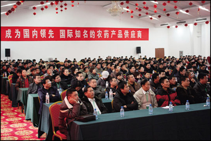 晚上18:30,公司特意組織了答謝晚宴和文藝演出,黃總發表了熱情洋溢的祝酒詞。室外冰天雪地,室內暖意融融賓朋滿座,全體經銷商朋友和我公司全體營銷、管理人員歡聚一堂,在融洽、熱烈、歡快的氣氛中,談笑風生,暢談未來發展,大大增強了經銷商之間和廠商之間的了解和友誼,增強了深入合作做大做強事業的信心。14日上午,公司派發專車送廣大客戶赴濟南參加第25屆全國植保會,至此,本次經銷商洽談會圓滿結束。