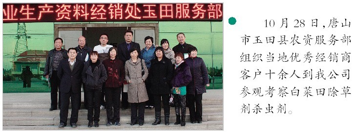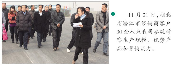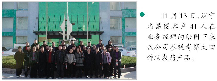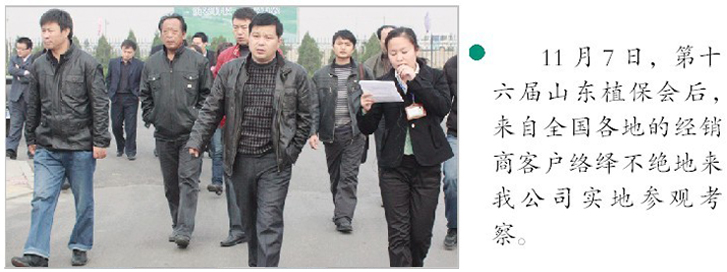 時(shí)間:2012-08-10 14:56隨著濱農(nóng)品牌美譽(yù)度的不斷提升,各地客戶對(duì)濱農(nóng)的認(rèn)同度不斷加深。初冬時(shí)節(jié),農(nóng)化市場進(jìn)入銷售淡季,全國各地經(jīng)銷商客戶紛紛慕名來我司參觀考察,意在全方位考察我公司生產(chǎn)實(shí)力、產(chǎn)品特色、新品上市等情況。公司解說員張娜、常海燕、舒麗麗與公司隨行業(yè)務(wù)人員分別向一批批客戶介紹著濱農(nóng),并陪同客戶朋友們實(shí)地參觀制劑生產(chǎn)線、成品倉庫、研究所等,及時(shí)向客戶解疑答惑。來訪客戶紛紛表示,通過參觀他們更真實(shí)的了解了濱農(nóng)的生產(chǎn)規(guī)模、產(chǎn)品結(jié)構(gòu)及綜合實(shí)力,與濱農(nóng)的合作前景更加廣闊,信心更加堅(jiān)定。