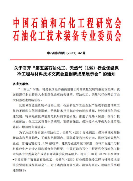 大會將邀請中石油、中石化、中海油、中化集團、神華集團、國家管網集團等單位相關領導出席大會并做重點發言,作為參會代表,科好特公司將與來自國內外保溫保冷材料上下游一百多位杰出的企業家、學術界翹楚等,就石化、天然氣保溫、保冷、腐蝕與防護等問題進行交流,共同展望新趨勢,探索新機遇。