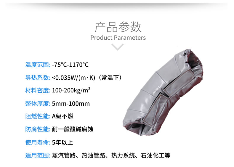 蒸汽管道保溫衣可根據(jù)不同形狀的設(shè)備量身定制各種保溫層,適用于飲料,食品,石油化工,冶金,造紙,電力等行業(yè),其材料為特殊材料,隔熱性能良好,使用壽命長,不易老化,大大提高了利用率和降低維修維護(hù)成本。韌性好,易于彎曲聯(lián)接。可以大大改善工作環(huán)境,降低工作環(huán)境溫度,重要的是防止工作人員出現(xiàn)意外。
