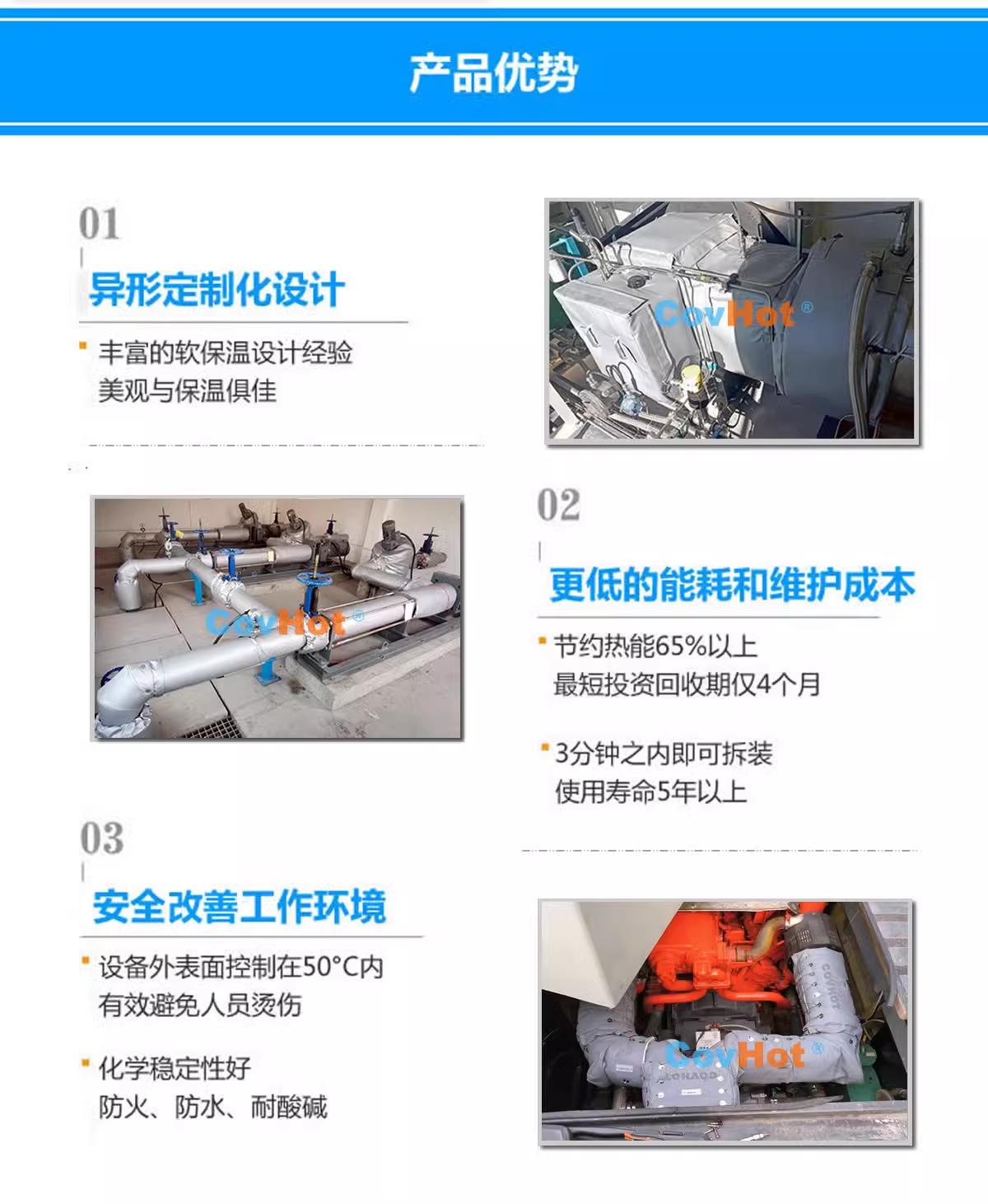 7. 設計:采用單層和多層可拆卸式保溫衣設計,通過魔術貼和皮帶連接,安裝拆卸十分簡易,不需要專業技術人員。