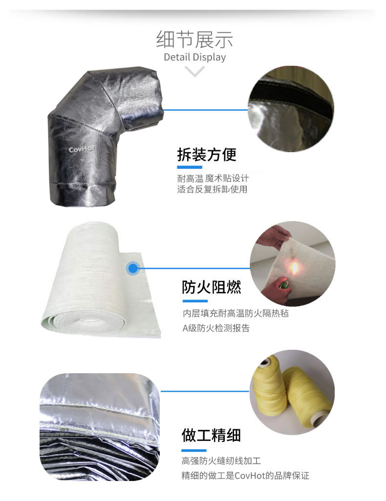 在實際的蒸汽管道保溫中,當對某些設(shè)備、閥門、法蘭等管件進行維修、更換時,傳統(tǒng)的保溫方式并不適合安裝在需要定期檢查、維修的閥門上,但是可拆卸保溫套卻可以很好的解決這一問題。由于不可拆卸式的絕熱方式,要想對設(shè)備進行維修、更換,只能損壞原有的隔熱機構(gòu),重新購買安裝保溫設(shè)備。可拆卸式保溫套是一種專門使用于蒸汽管道保溫的一種好方法,下面我們來了解一下它的性能及特點。